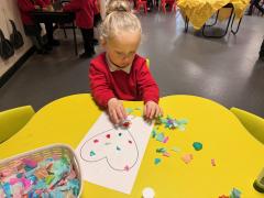 This week we have been exploring The Family Book and the children have loved talking about and drawing the members of their family. On the creative table, they have been busy making beautiful tissue paper hearts to give to someone they love.
