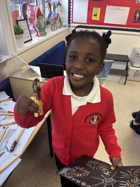We have had a wonderful day celebrating Bonfire Night. The children have learnt how to stay safe on Bonfire Night, have created their own chalk pictures, and, made their own breadstick sparklers!