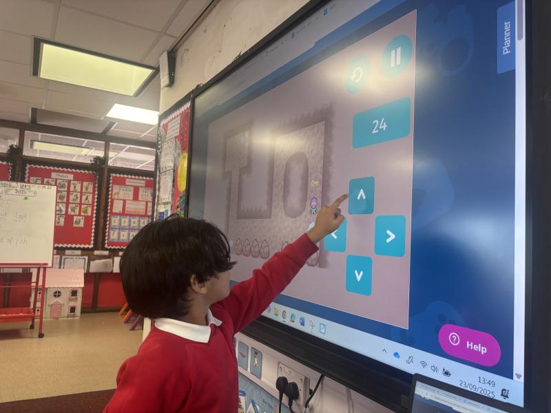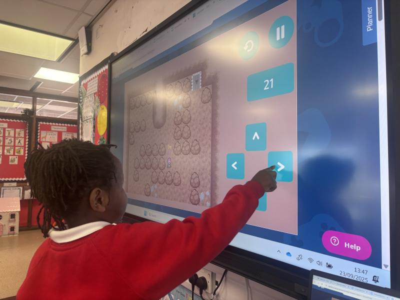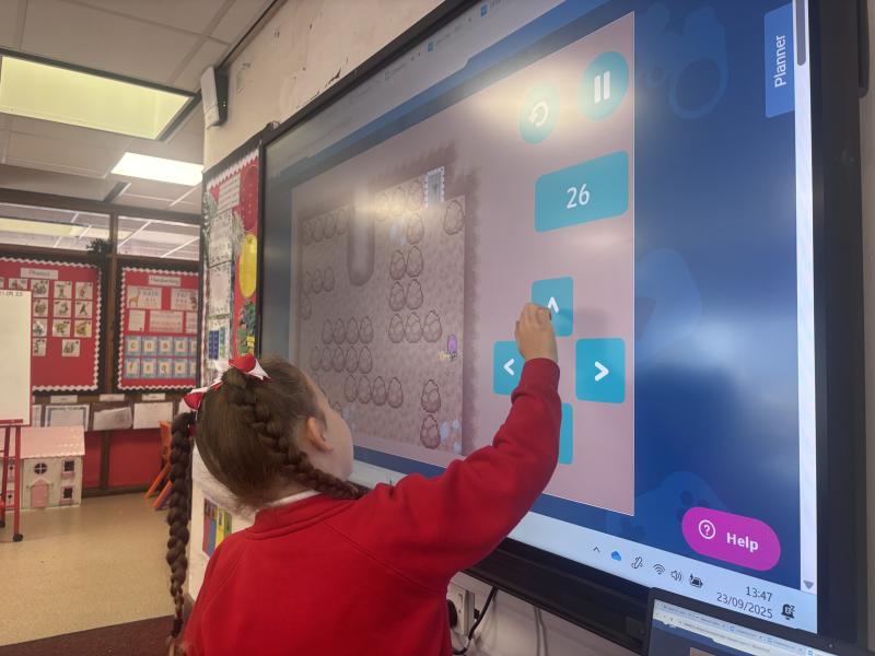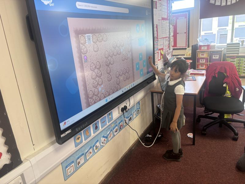 We also learnt about algorithms. We discovered that an algorithm is simply a set of instructions. To practise this idea, we played a game where the children had to follow my “algorithm” exactly. This led to some funny moments when the instructions weren’t quite what they expected – showing us how important it is to be clear and precise when coding!