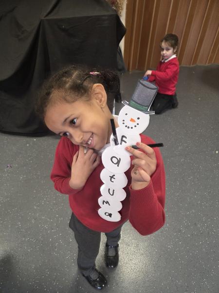 We also took part in some fun snowman-themed name writing. Each part of the snowman’s body represented a letter from the children’s name. The children carefully built their snowmen in the correct order and then decorated them ready for our classroom display. This was a fantastic way to practise name recognition and letter formation in a creative way.