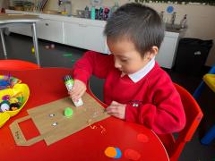 This week we have been practising our ball skills outdoors. We've had lots of fun throwing, catching and kicking the balls in our ball area. We will be working on developing these skills after half term.