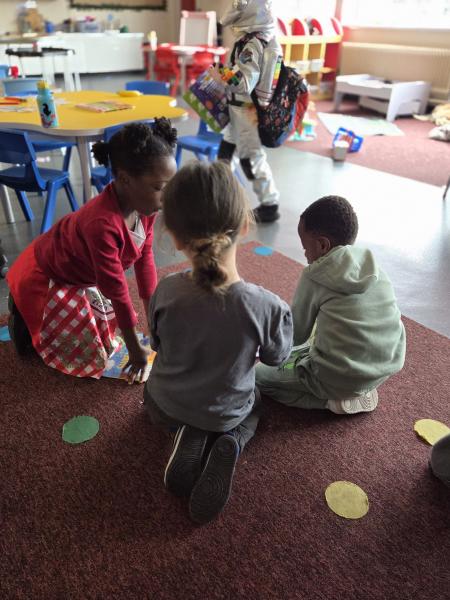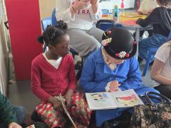 One of the highlights of our day was teaming up with Year 3. The older children kindly read stories to us, and we loved listening to them and looking at the pictures together. It was a special opportunity for us to share our love of reading with the older pupils.