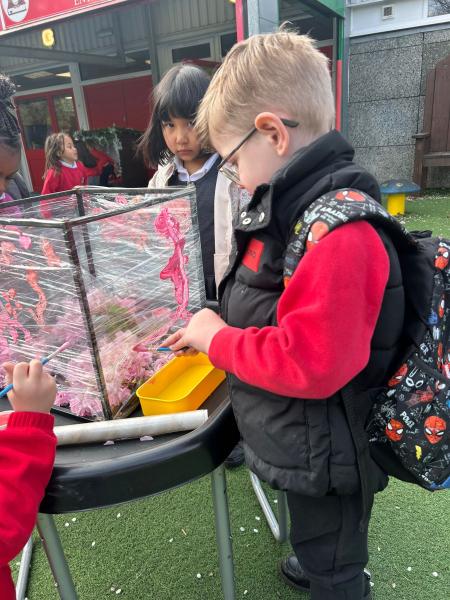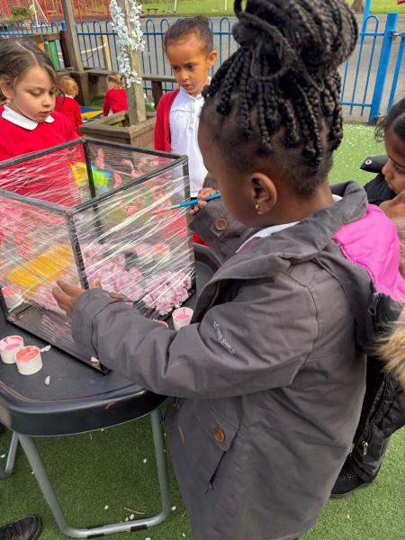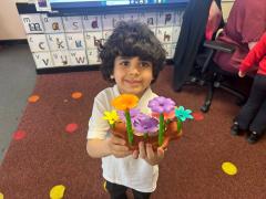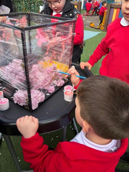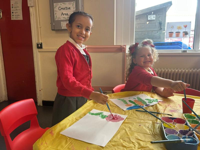 In the creative area, the children have been busy painting beautiful flowers, which are now brightening up our classroom displays.