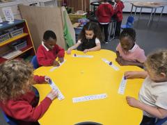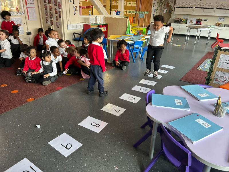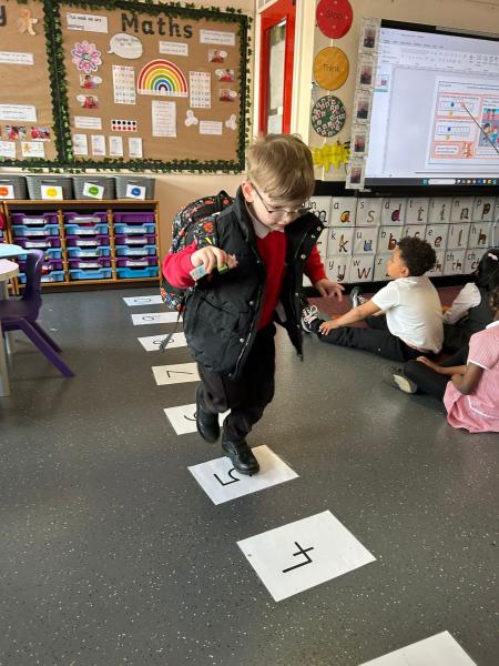 We even made a giant number track across our classroom floor! The children had lots of fun rolling a dice and jumping along the track to work out their answers. It was a great way to bring our learning to life!