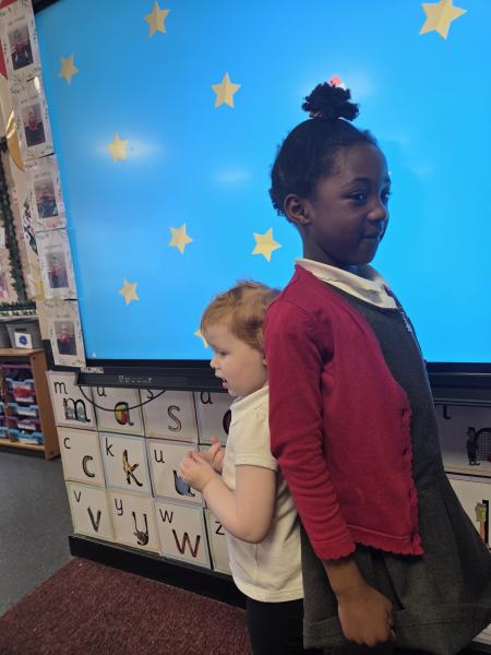 In maths, we have been focusing on measure, exploring length, height, and distance. The children enjoyed comparing objects and talking about which were longer, taller, or further away, using practical resources to support their learning. We especially enjoyed measuring each other to see who were the tallest and shortest members in our class!