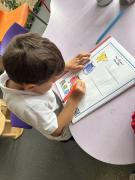In literacy, we have been reading The Colour Monster. We used our phonics skills to label the different feelings shown by the colour monster and explored the topic of emotions together. The children shared their ideas about what we can do when we feel a certain way, such as talking to someone, taking a break, or finding something that makes us happy.