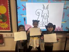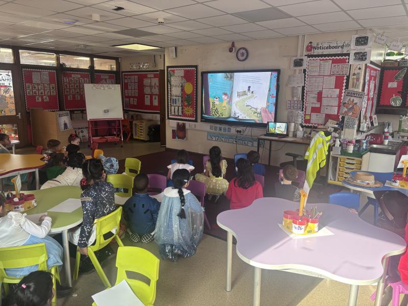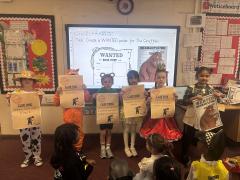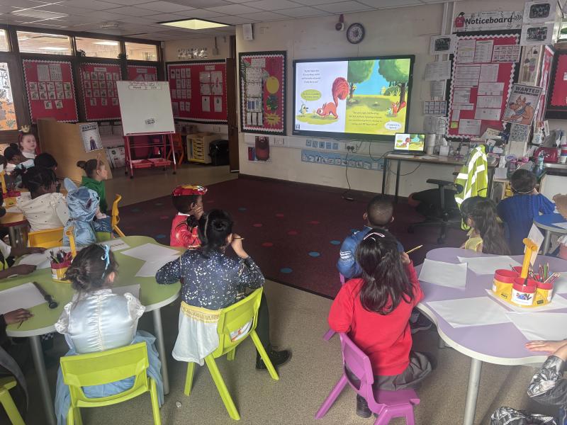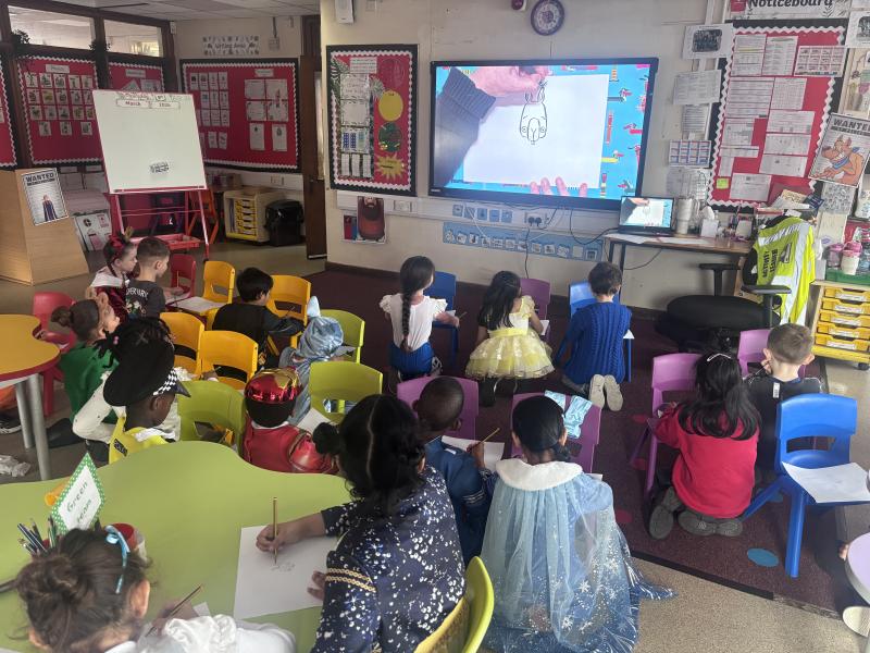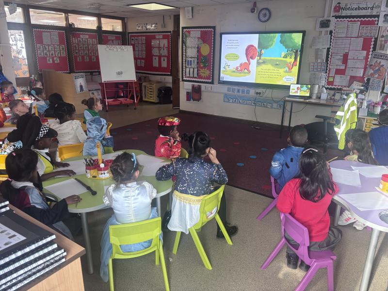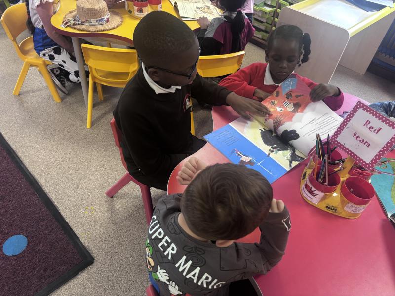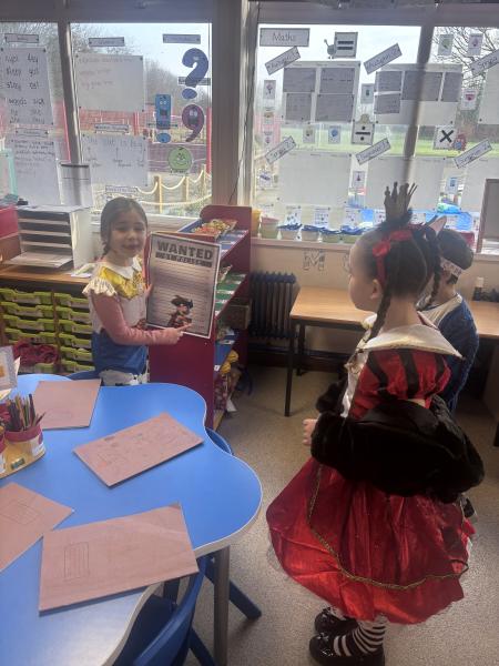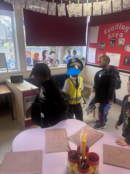 Well, when Class 1 came in this morning they had a BIG surprise! There was a crime scene in the reading area and someone had stolen ALL of the books!! We worked together to solve the clues and figured out that it was the naughty Gruffalo. The children made wanted posters for him and we are going to check the cameras later to see if we can see him stealing them.