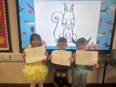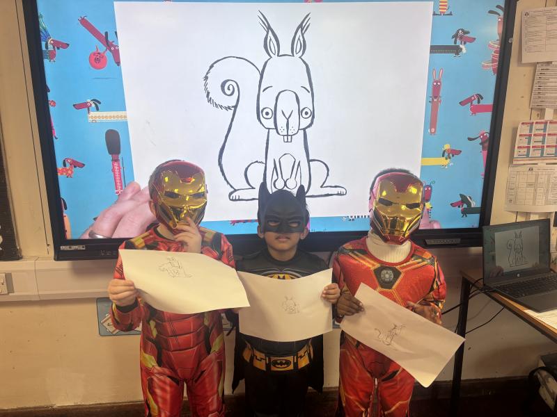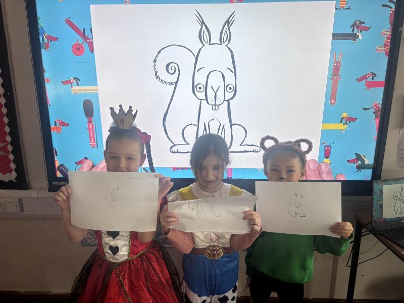 We enjoyed reading the story The Flower Thief and used this as inspiration to draw squirrels, with some help from Draw with Rob.